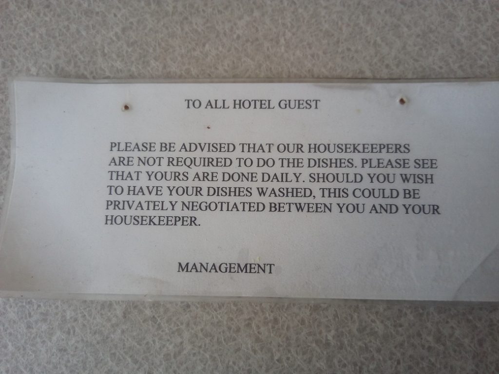 Luckily we didn’t have to enter into any ‘personal arrangements’ with our housekeeper.