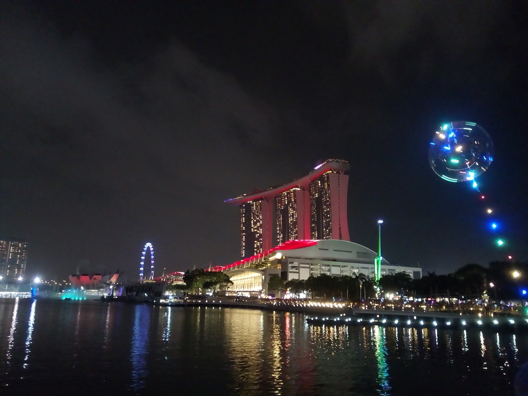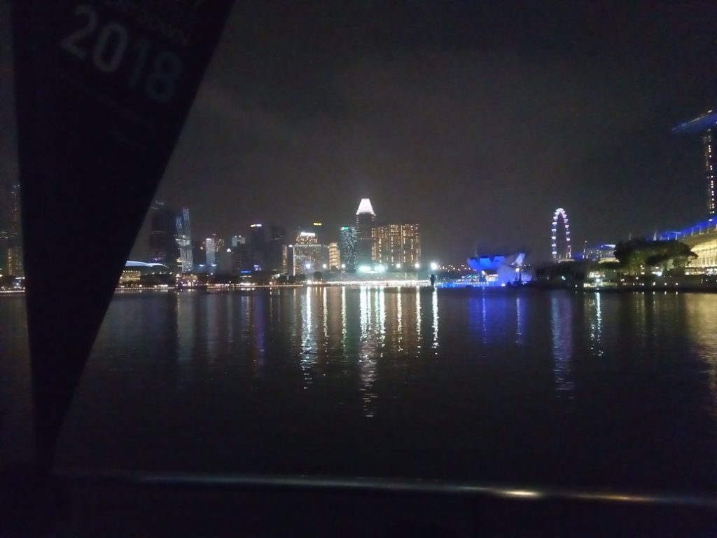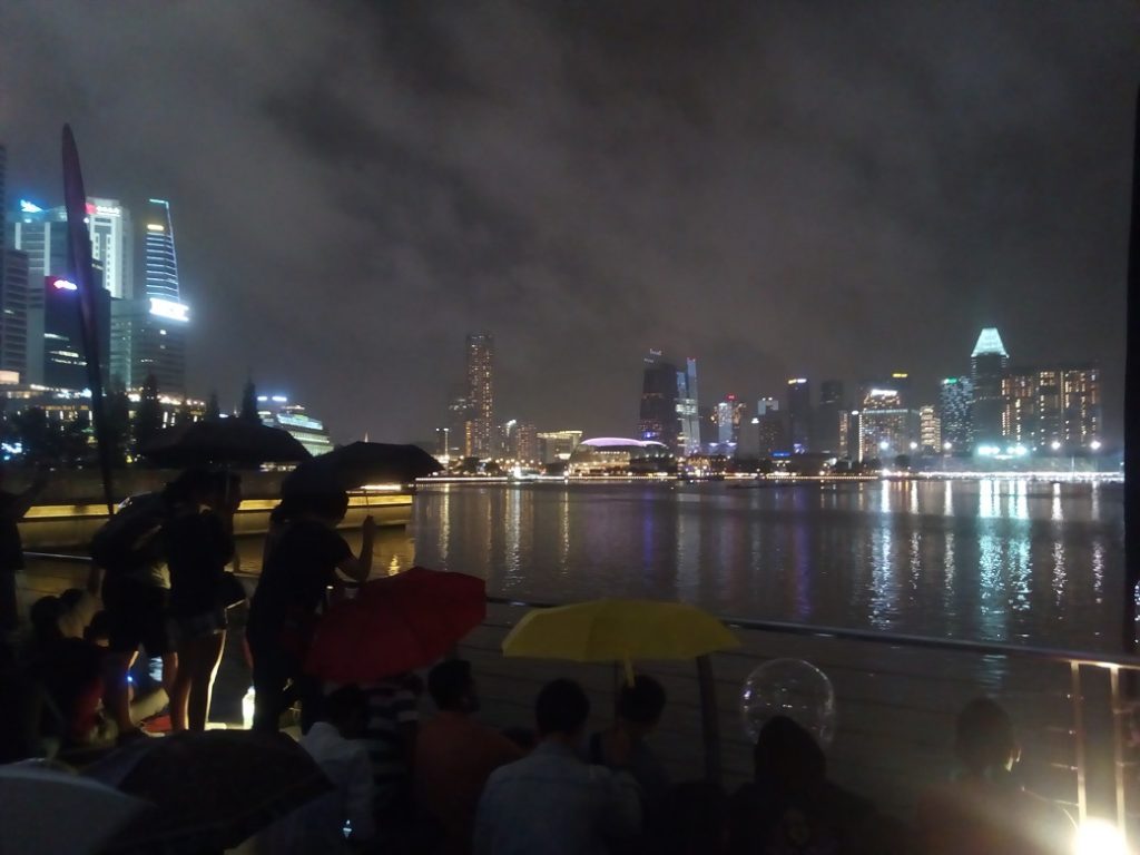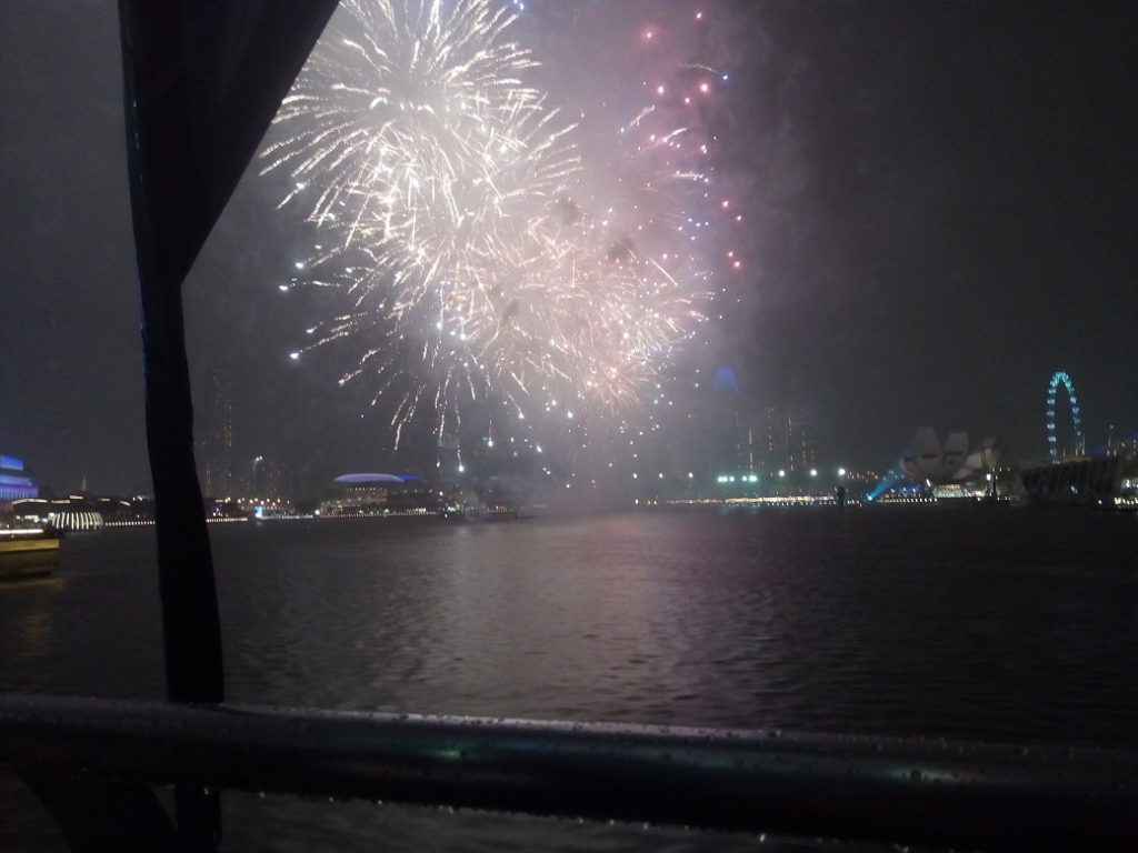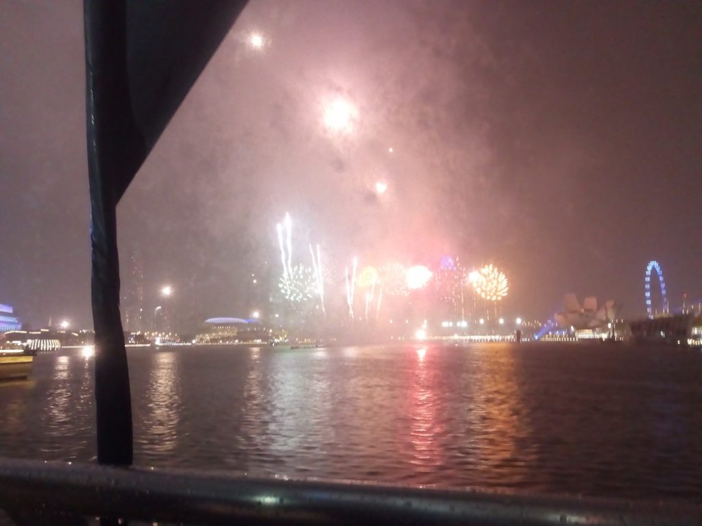 New Years Eve Fireworks down at Marina Bay in Singapore. To say it is wet and raining can only be an understatement.