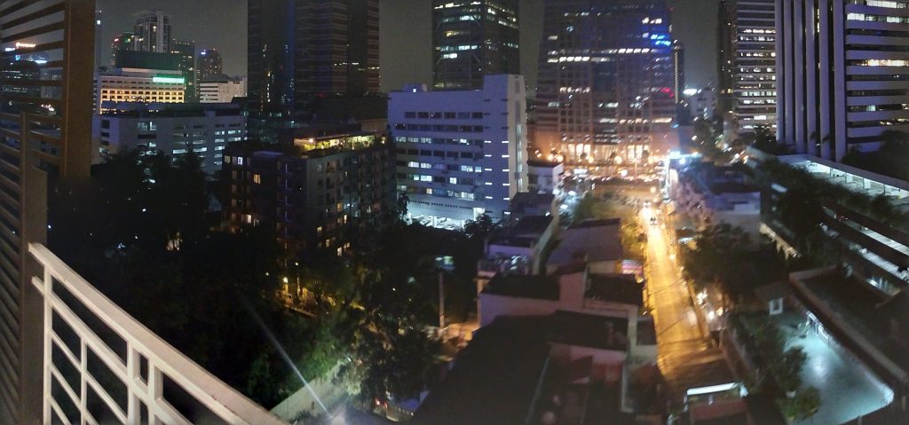 Hotel is a modern right in the centre of Bangkok, with a pool, gym and, luckily for us no rooms available – so they upgraded us to a suite of rooms on the 12th floor. Nice touch. This could make up for the fact one of the lifts is highly suspect and we have almost got trapped in it once already.
